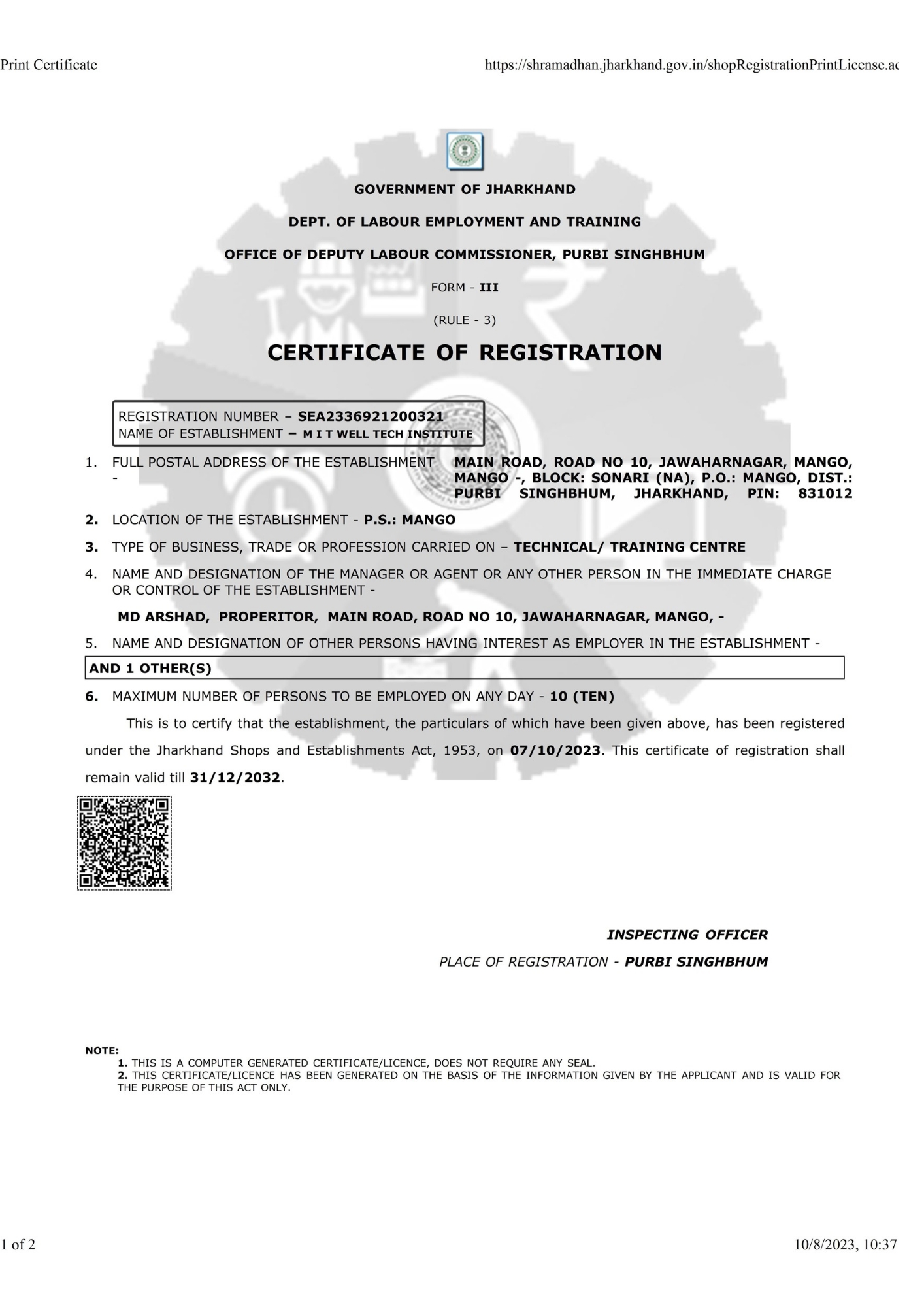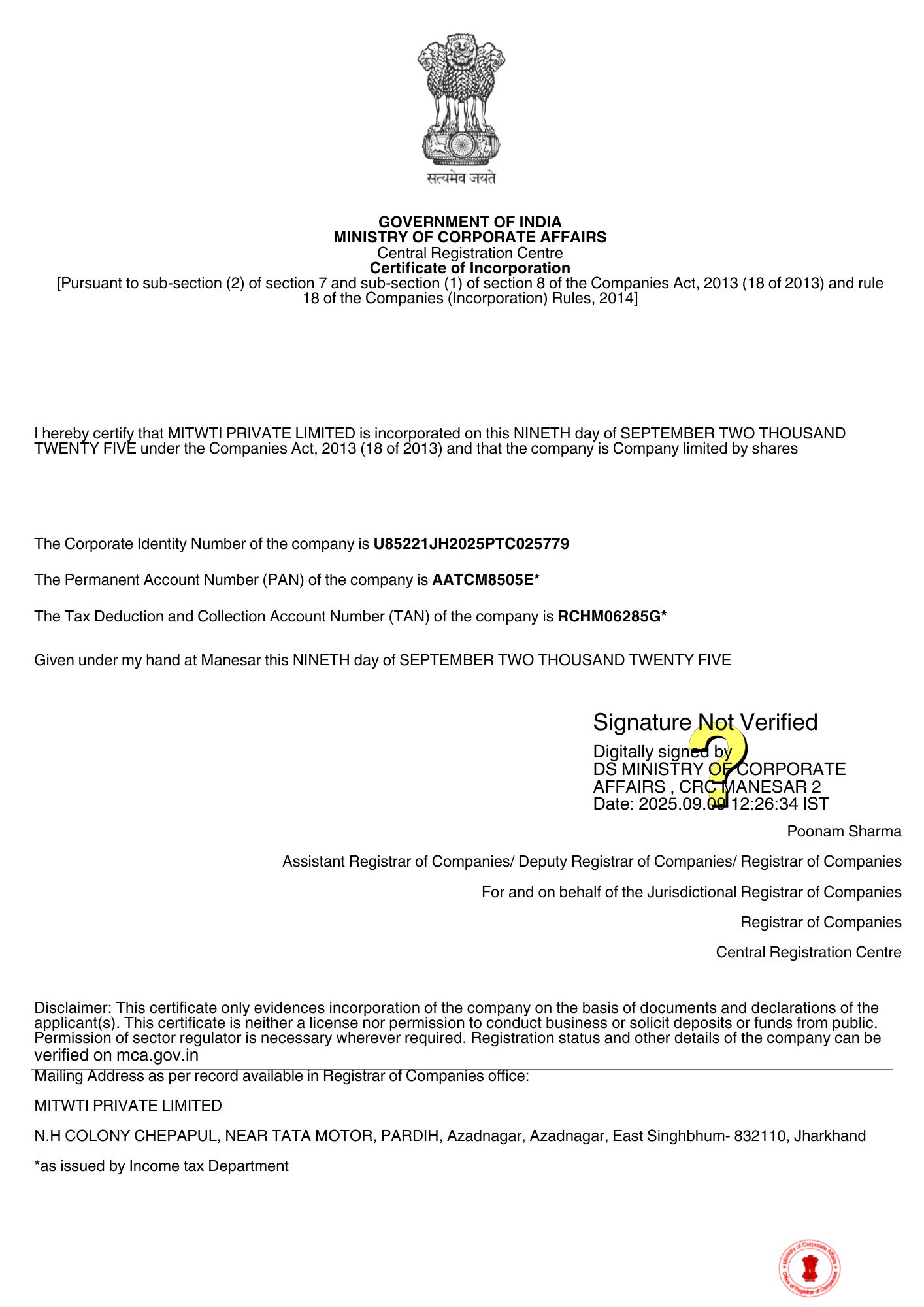 Registered by Govt. of India | Ministry of Corporate Affairs
